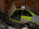 xenon body kit,m3 mirrors,shaved: emblems,antenna,hood squirters,roof gutters,side moldings,doorhandles,trunk and key hole,filled body seems,gas door. gas filler relocated behind taillight, lambo doors. going to get it painted some time soon.