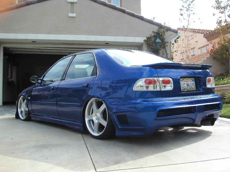 m3 fenders, m3 road signal mirrors, hans side skirts, c west front, monster scoop hood, extreme rear bumper, custom dupont paint,flushmount spoiler, black corners, black projectors, catz hid kit, piaa foglights, euro tails