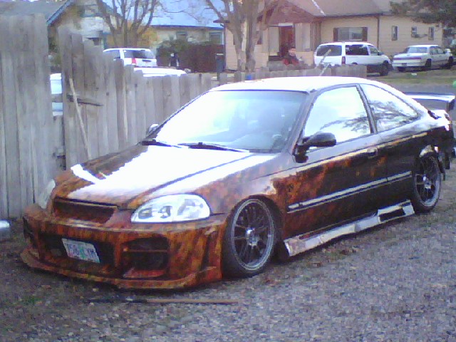 Custom box painted to match, redo interior, run bigger line for air ride, motor swap (H22).