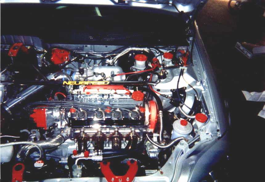 slow 1.6 SOHC, chrome valve cover, DC polished header, polished "no name" intake, greddy cat-back exhaust, moroso red plug wires