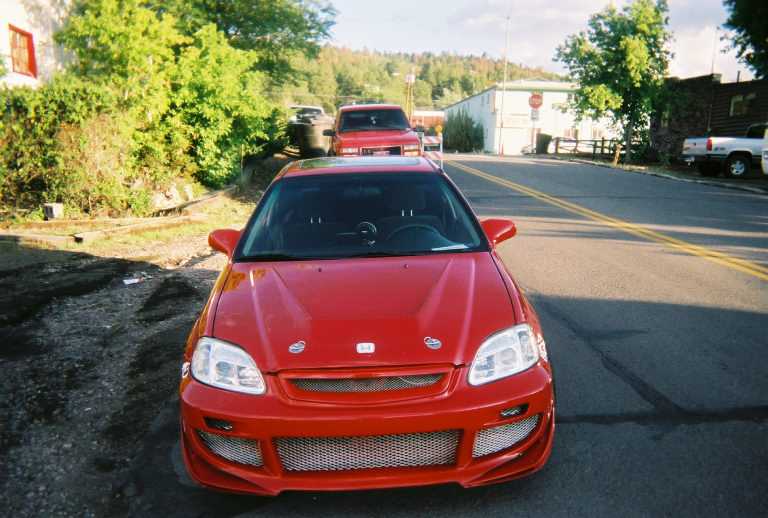 full body kit, hood, hood pins, white honda emblem, si wing, z3 fenders, pilot fog lamps hidden behind front grill, type r front grill,