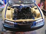 2.3 polished, chromed, and painted, bolt on bs, cams, clutch, computer, head and intake port matched. Shaved fire wall, aprons, and core support. Relocated all the wiring under the dash to clean up engine bay.