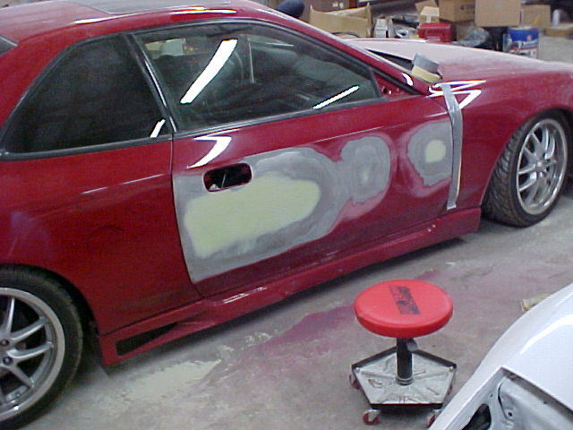 custom green paint with green pearl and gold flakes. R33 full body kit. Back bumper and side skirts molded. Trunk lid shaved emblem and trunk lock.
