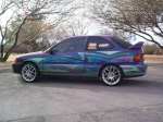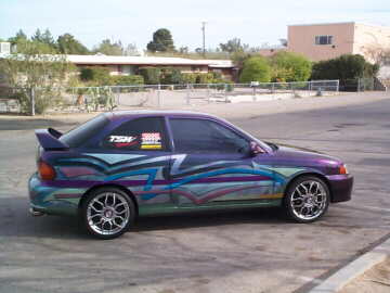 17 color tribal chameleon and candies paint job. Shaved handles, remote door pops, shaved emblems, shaved antenna, frenched antenna in rear fender, supra wing, blue side turn signal lights