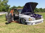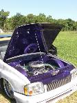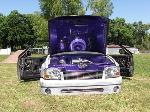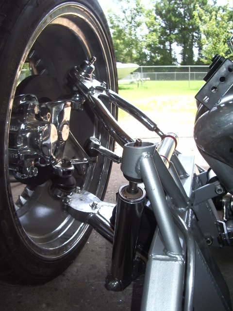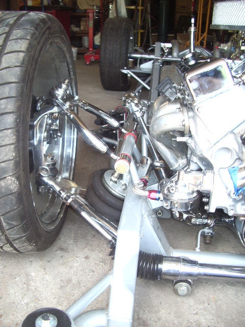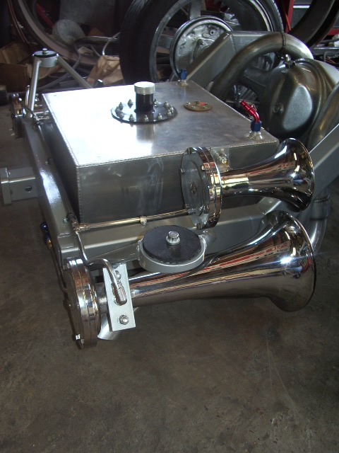 Bags with one off frame with built in air tanks(powder coated), control arms (chrome), Toyota spindles (chrome), brakes (chrome), ball joints (chrome), mustang rack (chrome), 2-link rear (chromed), Toyota rear axle, RCI fuel cell, rear train horns (chromed), 2 Thomas 337 compressors, GC 450 valves, pollished air lines and fuel lines