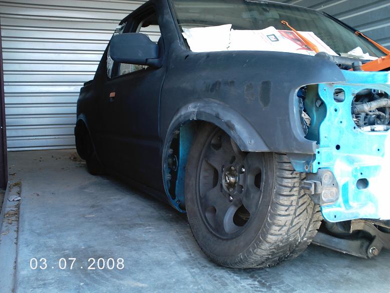 MODIFIED STOCK LOWER/UPPER CONTROL ARMS TO LAY-THANX 2 JOE W/F.O.N,NV.SHORTNED STEERING ARMS BY ME.C-NOTCH DONE BY ROBBIE AND LARRY.R.I.P LARRY.UR MISSED,BRO.86 MAZDA REAR 2 TUCK.WISHBONE SET UP DONE BY ME.