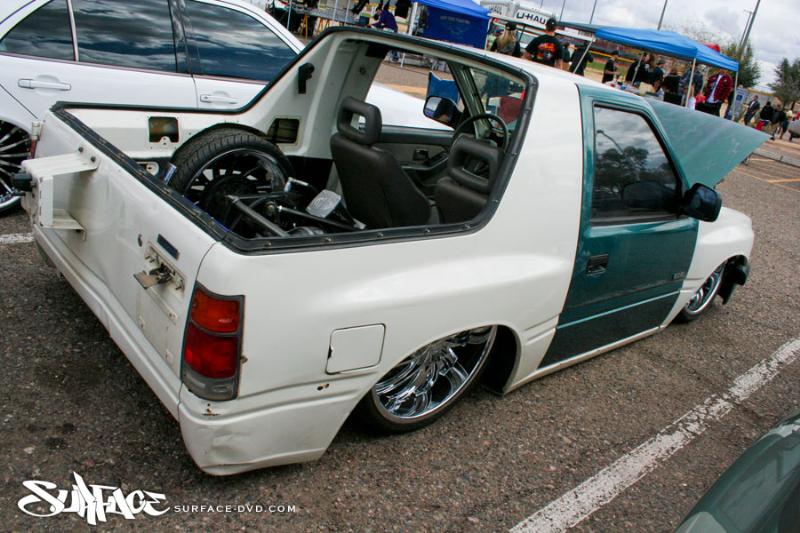 shaved doors, gas door, tail lights, tail gate, cali combo, permenant convertable rear with smoothed hatch, orange primer with rodeo doors, SFBD, AVS LEDs, AVS shaved door kit A BIG thanks to Jason at AVS for helping a Soldier out with a dream
