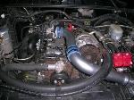 Accel 8.8 wires, Iraggi 240 Amp Alt., custom billet alt. bracket, 58MM trottle body, triple electric fans, two 12" fans between grill and radiator, one 16" fan under hood on radiator.