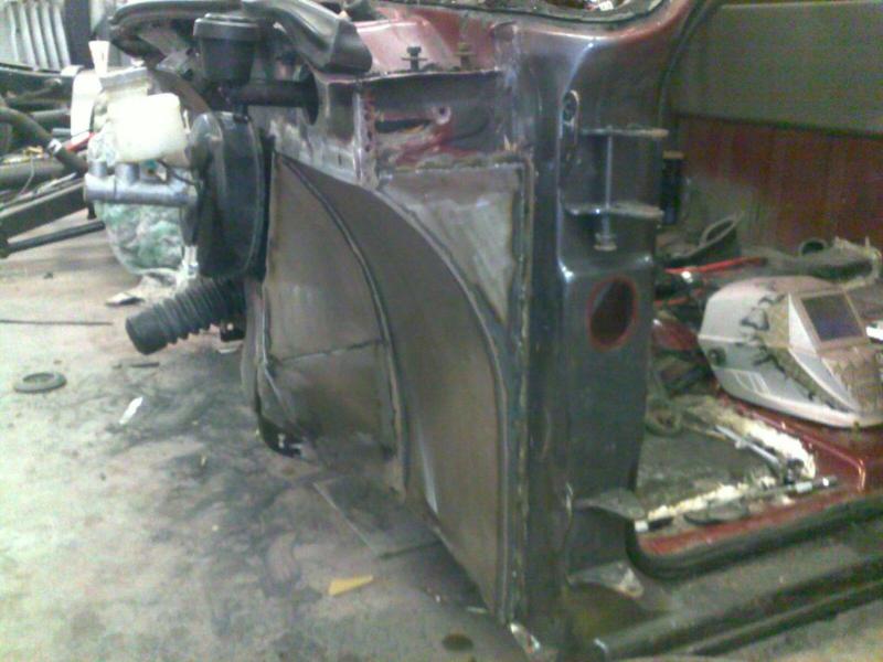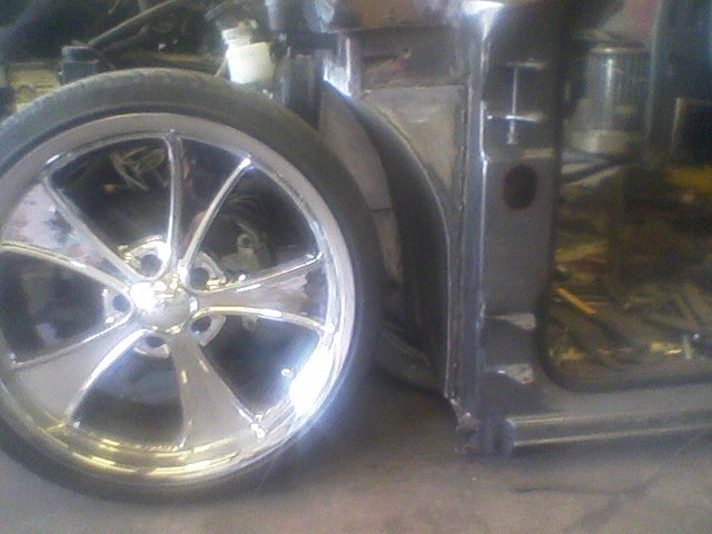 new front clip (grille, bumper, headlights and corners) and 8000K HIDs...shaved gas door, shaved taillights, molded rollpan, caddy tails, Goodmark Steel Cowl hood