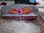 headlight conversion, mesh grill insert, '90 Isuzu bumper smoothed and welded into a 1-piece w/ valance, custom side markers, shaved: door handles, gas door, antenna hole, ol' skool side mirror mounted to door frame, can-do smooth skin with air actuated pop up tag, trailer taillights, frenched toyota front bumper right in the middle of the rear skin