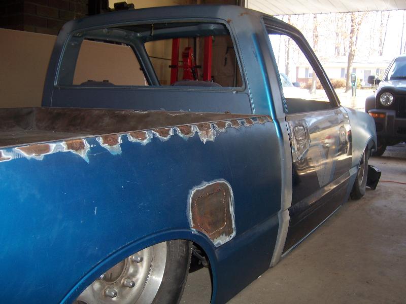 Bagged and body dropped 3.5 inches.. Fully shaved.. Sheet metal bed..