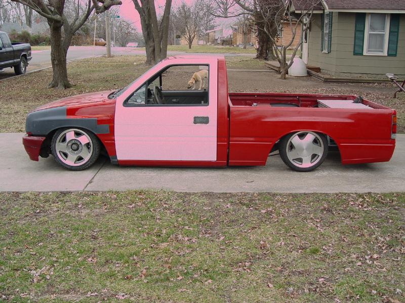 Shaved doors, gas door, antenna hole, holes were some retard put hood pins in, bed seams, and cab seams