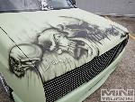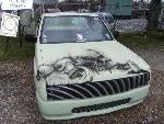 HOK Mint Green,shaved handles,mirrors,gas door,hood pissers,emblems,corners,bed seams.Rodeo door panels,Aussie Tails,Grant combo & license box,Sectioned/Smoothed & molded 4x4 Yota bumper/valence,Sheetmetal bed floor & wheels tubs,RCI 15 Gal. Fuelcell