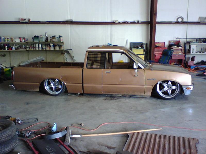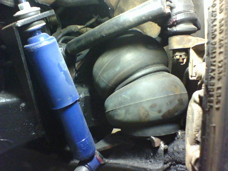 custom tubular uppers, severly modded lowers, completely removed shock tower, will lay on 19' or 20's if i took the torsions back out, oh yeh and a 3" block in the rear