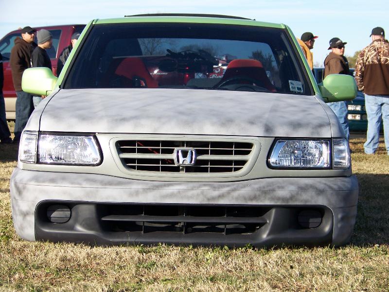 02 honda passport front end conversion, shaved door handles, tailgate handle, windsheild squirters, wipers, all body seams, antenna, molded rollpan, molded licence plate box through body line, rodeo doors and mirrors, sliding ragtop, "jdm" diamond cut rodeo tails, prolly some other stuff too i cant think of at the moment