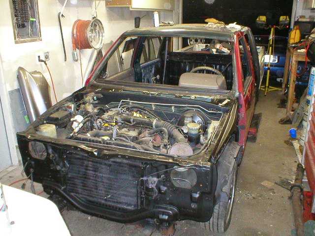 paint,stereo,interior work to be done before spring, yeah right I LOVE PRIMER. That silver longbed will be the donor truck for a clean bed, and front sheetmetal w/ 95 Doors and mirrors. Im going to hang the older metal on that and prime it and cut the roof off for summer :)