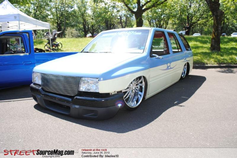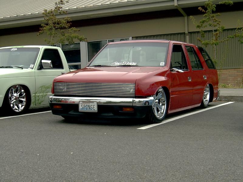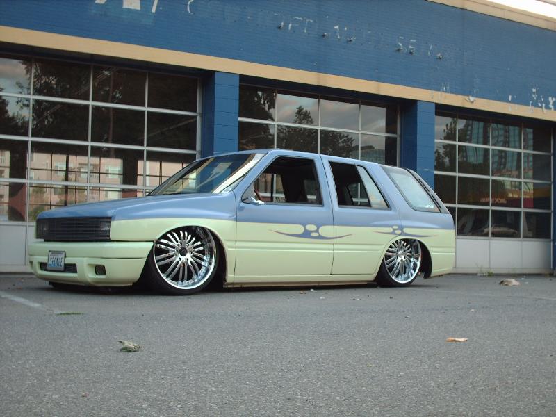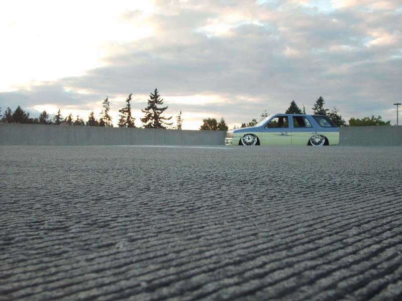 Bodydropped 2 1/4 inches traditional. Thanks to Jay with Fab-Lab and the crew at Advanced Auto Design in Auburn . Bagged front and rear with 2600lb Slam's(thats right, you read correctly, 2600's up front too). This thing gets some crazy mad lift. Its NUTZ! Thanx, Jay from "FAB-LAB". We swapped out a '91 Space cab front clip from the firewall fwd and z'd it up 2 inches while we were at it. The rear was notched and the floor was raised 5.5 inches to cover it all up again. I replaced the rear end with one out of an '87 spacecab which allowed me to get enuff room to get the tires all the way up without rubbing the outer skin. It was all bolted to a solid 2-link that was made by Mothergoose Customs up in Canadia and all welded in by me and Jay. The rear door jams and doors were cut out to give the rims room typical 4-door suv style. Trailer tubs were put in and I am waiting to finish the doors and jams until the bodydrop gets done. A set of 2" drop spindles from Aim finished laying the frame flat on the ground. The entire system is controlled by the Pressurerite system from FAB-LAB. I'll put some new pics up soon.