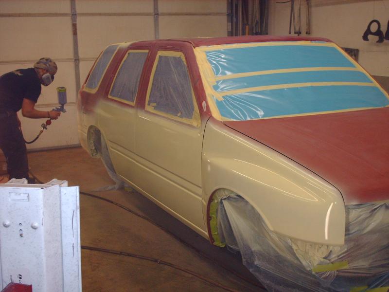 2.6 ltr 4 cyl w/ a 4spd AUTOMATIC TRANSMISSION. Modded Honda Civic intake and a yellow top. A lot of relocated crap. And big holes with giant wheels poking through!!!