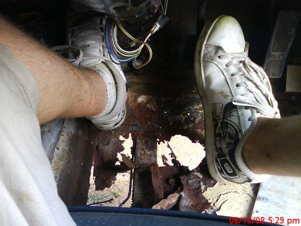 1seat and a mail tray. with rust and a floor patch that apparently was a speedlimit sign by previous owners.