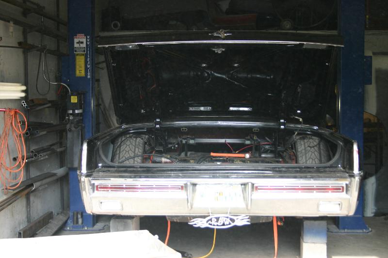 bagged 1\2 inch line, GC extreme valves, air ride 4 link, oasis compressor, slam specialties bags, tubbed driveshaft tunnel..driveshaft lengthened 2.75 inches. custom gas tank built. new rear fenders in the trunk-- trunk floor and inside floors rhino lined