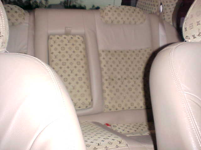 The headliner, back deck, door pockets, sunvisors, headrest, seat inserts, and trunk have all been upolstered in Louis Voutton. Props to Rusty at Penton's Auto Trim.