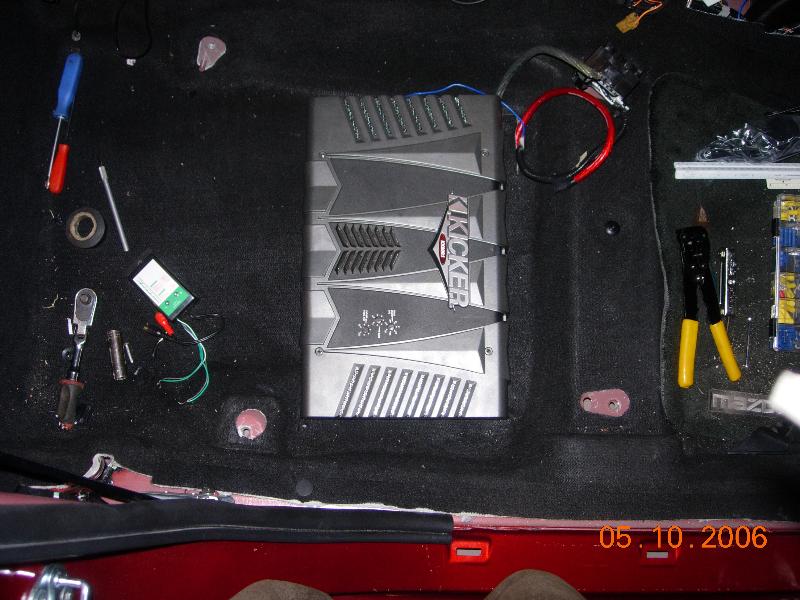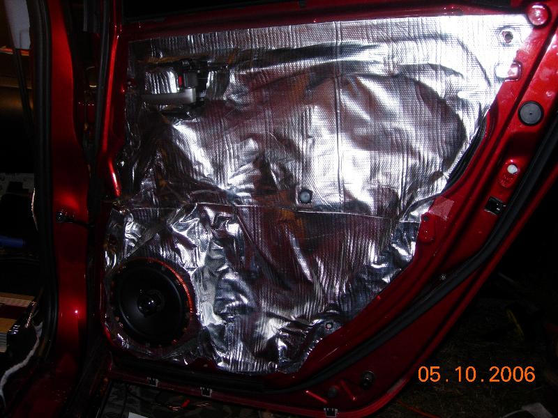 All doors are covered by sound deteneng material. fitted with custom adaptors to fit Quantum 6.5 components up front and 6.5 2-ways on rear all powered by a kiker 350w amp.