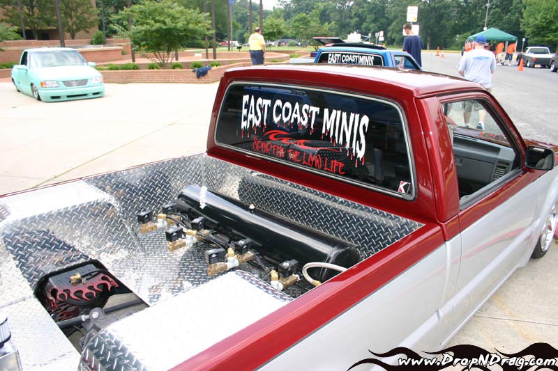 Shaved Door Handles, Tailgate, Rollpan, Custom 2 tone Red/Silver paint, Chrome Grille, Bumper/Valance
