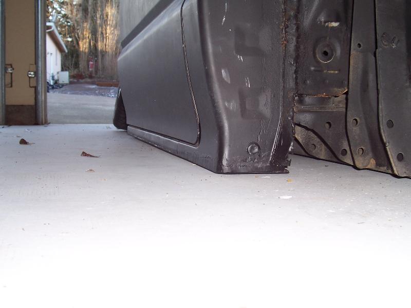 - S O L D - Bodydropped 4". Flat black. Fully Shaved with frenched old style caddys and angled plate in the center. Sheetmetal inner bed sides. 11 gal spun aluminum fuel cell. Tubbed firewall. Cut and capped rockers on my cab and bed so it lays flat out. The doors sit about 3/4" off the ground...