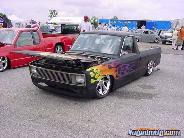 shaved bed,doors, tailgate bodyseems,taillights...flat black and flames for now.