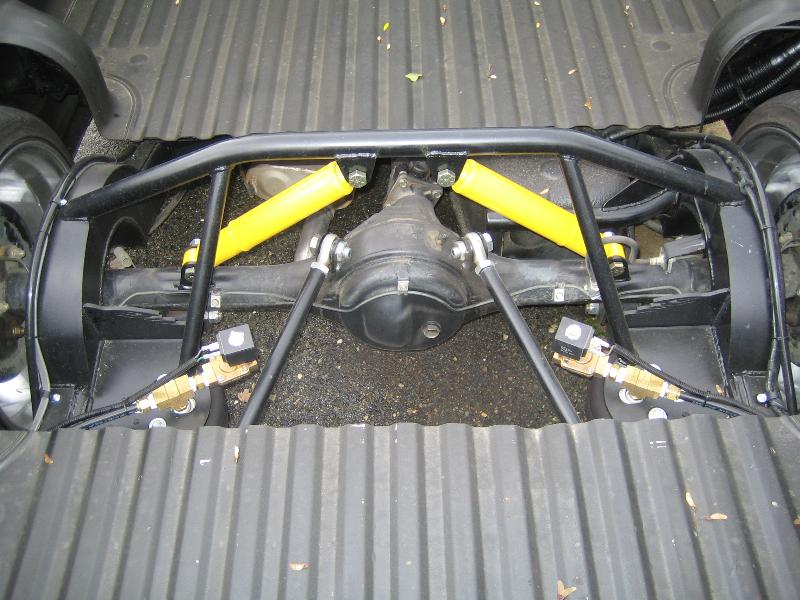 conitech's up front, with 2inch dropspindles, canileaver 4link with 7inch slams, custom bridge w/shocks mounted to ride like a caddy, round C notch, nitro tank, 7gal, AVS lockable switch box, much much more...