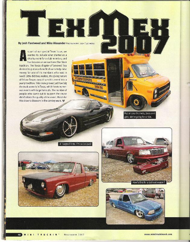 FBSS, slam bags re6s in the front and re7s in the rear, dual viair 480s, 7 switch brass knuckle box, train horns for the tards that like to pull out in front of me.