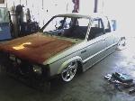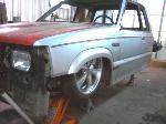 stock floored...pinch weld cut off...shaved everything...35x35 ragtop...suicide doors...wood bed kit
