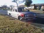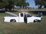 MY TRUCK HAS EVERYTHING SHAVED, FRONT TILT HOOD, 3 IN. BODY DROP, 4X4 FENDERS, AND A RAG TOP