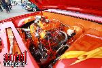 custom fiberglass panels and dash, cavalier seats -headrests, grunion fab shift knob, mini cooper speedo, Klassics Inc steering wheel. All wrapped in red vinyl