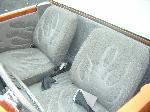 tweed with flames stitched in seats and door panels, fiberglass painted dash, custom steering wheel