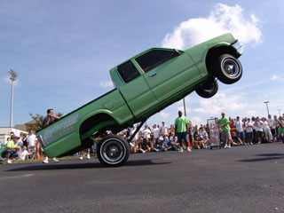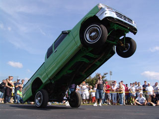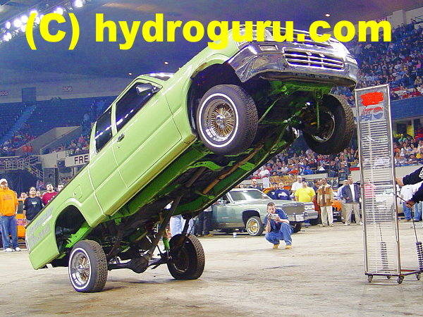 all hydraulic, 8" front cyl. 3.5 ton hopping coils, rear 12"cyl. 1 ton mini coils, 3 pumps-2 lona wicked pumps for the rear, 1 HiLow Elite pump to the front,4 switches