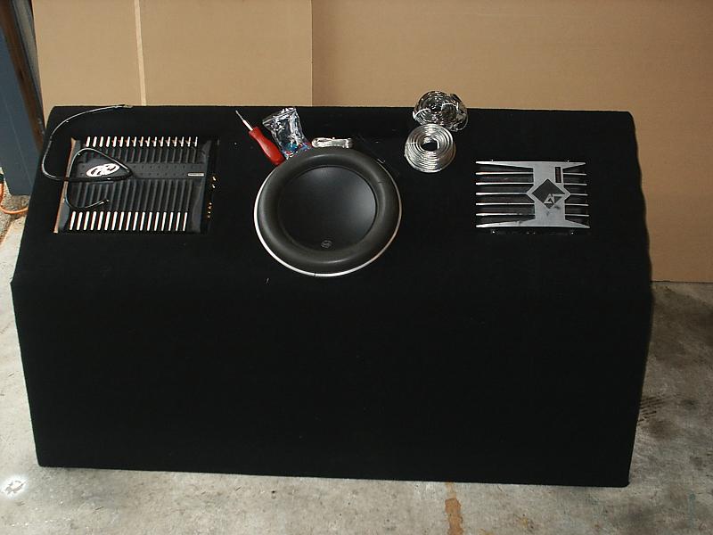 JL 12" W7, 1200.1 phenoix amp (both for sale $1200), alpine amp for the highs, and infinity components for the highs