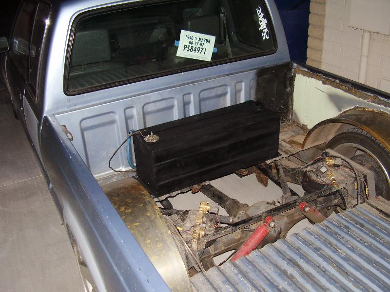 Shaved emblems, gas door, roll pan at Lowboy Motorsports, train horn also