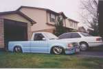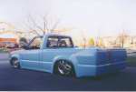 Shaved bed seams,tailgate,gas filler door,tail lights,door handles,locks inside and out,embelems,antenna, cowl pannel. Sliding rag (20x34),toyota 4- runner bumper and valance, LED tail lights, checkmate flush tonneau, custom paint,lexan rear window. oh and 4x4 sheetmetal.2-1/2" bodydrop