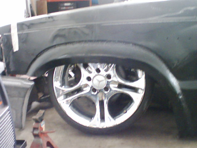 everything is shaved. the bed was shortend 28" for the blazer roof. suicide doors and reverse tilt hood and a shaved fire wall. the fenders were flared 3" to clear the wheels so i can turn all the way down. they are not 4x4 fenders!