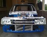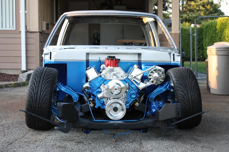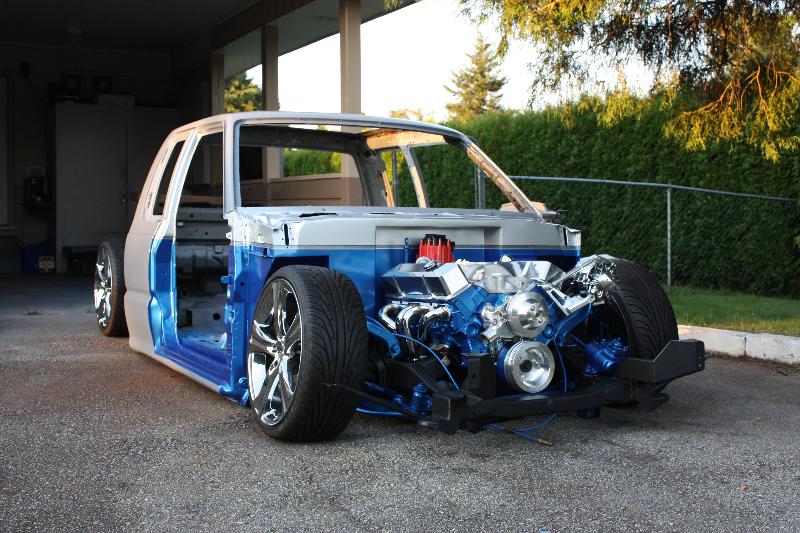 Body dropped 2 1/2 inches laying pinch, Sliding rag top, shaved everything, frenched atenna in rear quarter, 04 ranger headlights, toyota 4runner front bumper, blue and silver two tone paint, 4x4 hood.