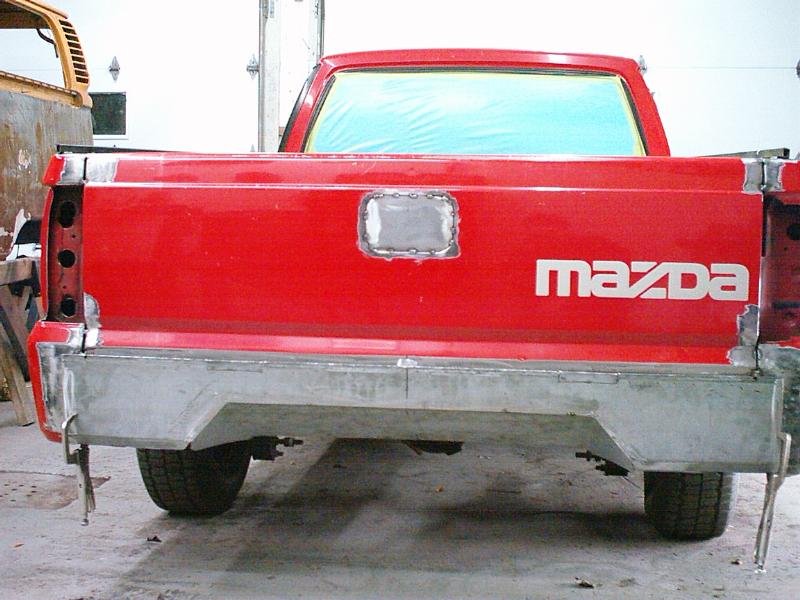 shaved antenna, emblem, all handles, upper firewall, wiper cowl, tailgate. Custom roll pan. Molded custom f-150 taillight. round tubs and notch cover for the rear. Square tub in front but a gone change it for round one. Checkmate bedcover. Chrome mirror. Suicide 4x4 hood and passenger door. Clear corner and diamond angel eye headlight.