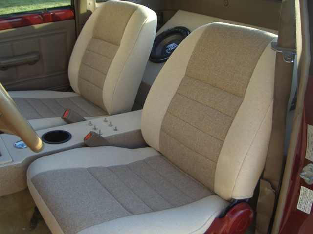 2 Tone oatmeal and brown, covered MDF center console and speaker box. Painted dash.