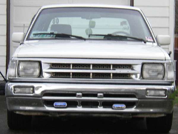 Chrome grill, Toyota conversion bumper, Shaved emblem from side and replaced with side marker lenses, Pilot Fog Lights, Soft top tonneau cover, Euro tail lights, Chrome door and tail gate handles.