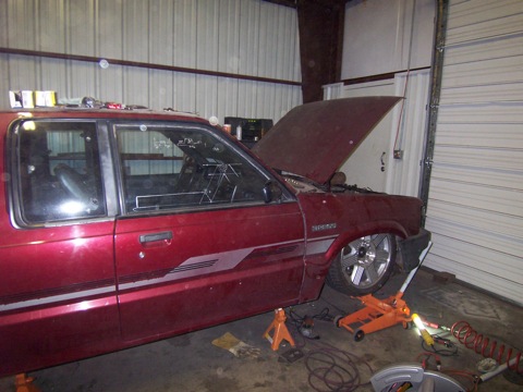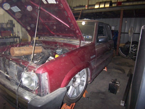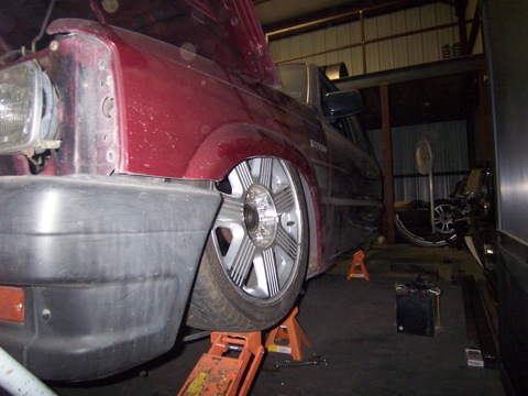 1/2 blitzliuft valves, 10 switches, 1/2 line, suicide doors wishbone, notch, relocated gas tank to rear, 2 VIAIR 480s