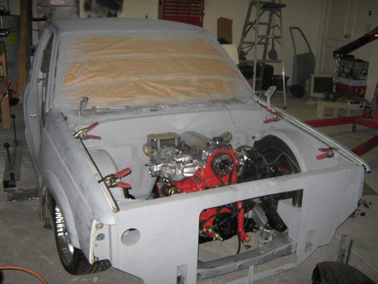 engineered stock floor body drop, dropped engine trans and carrier bearing 1/2" custom tabs, brackets, body mounts, 4 link, and all the other stuff nothing bought here! factory front clip welded up and ground smooth to flow with the rest of the frame, 2 3 gallon tanks and 12 gallon fuel cell mounted in rear, 2600 firestones on the bars in the rear 2500's up front, shocks all the way around, bed tilt, yada yada yada
