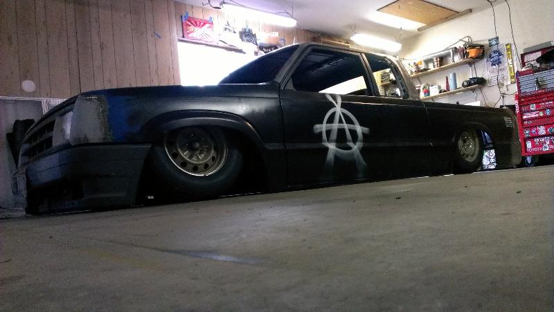 front bagged with slam bags, toyota front spindles, viair 444, aluminum tank, Toyota rear end, wishbone 3 link