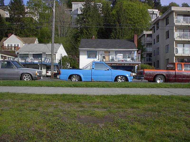 shaved handles, gas door, locks, bed welded shut, inside of bed is flat, and 4x4 sheet metal, roll pan, shaved cowl, pillars and 2600i hood