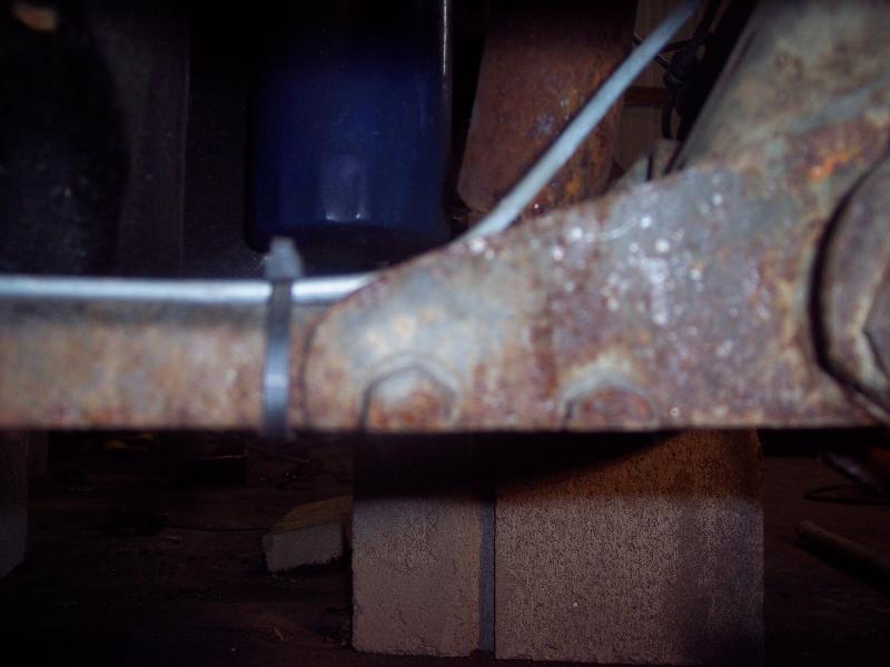 2500 bags in the front. some old torsion bar bag drop. lookin for some dropped spindles, if you know of any let me know. in the rear i have set up a four link that is made ffrom the rear suspension of a 97 grand prix wide track. i am currently workin on redoing the rear to it is cleaner, stronger, and up to date. i have moved the gas tank to the rear of the frame for clearance of the four link.