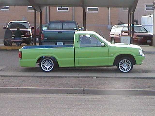 fully shaved crome bumper and and chrome mazda grill it is lime green now(thinking about neon blue graphics on it in a flame soon)